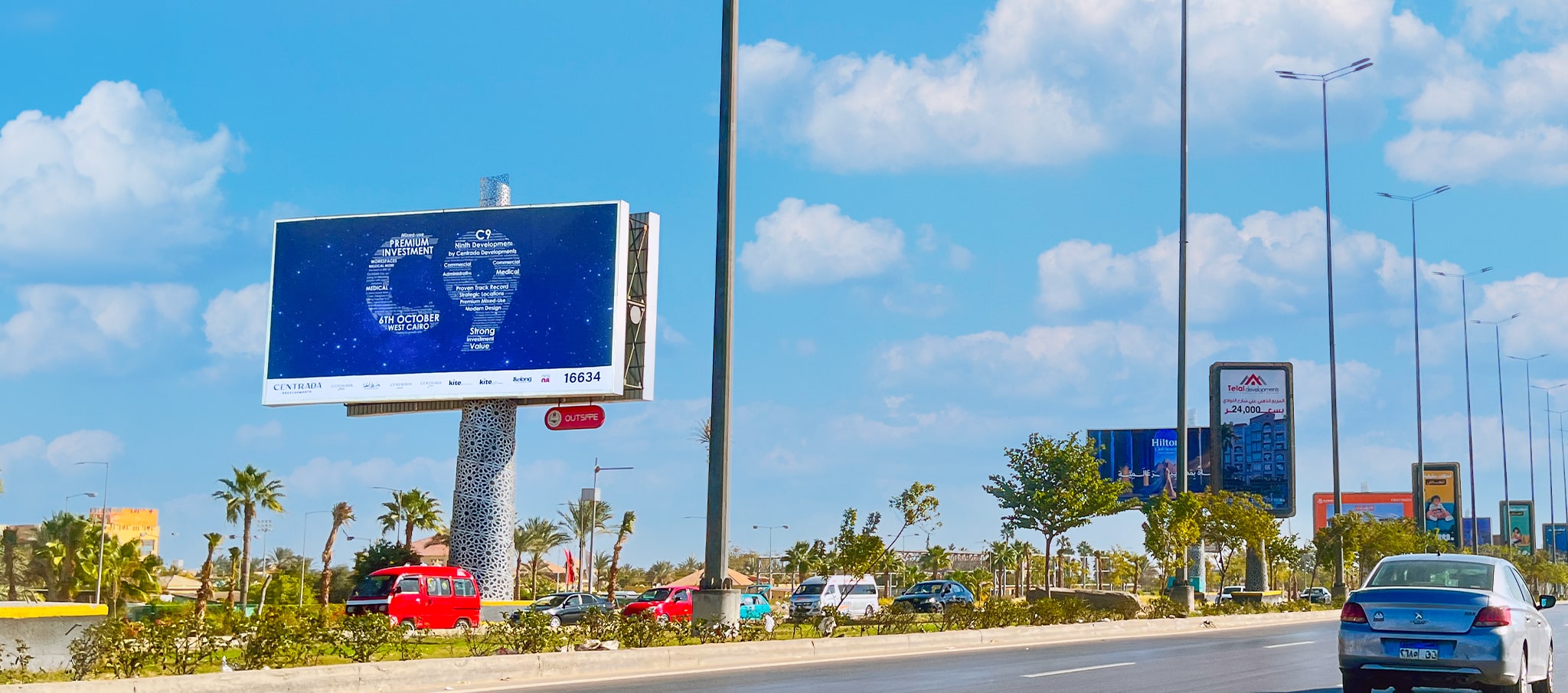 Positioned near Dreamland and the Hilton Dream hotel, these sequential uni-poles deliver targeted exposure in a bustling area known for residential compounds, hospitality, and entertainment. The sequence format enhances impact by presenting your brand across multiple consecutive faces, building familiarity and reinforcing recall.