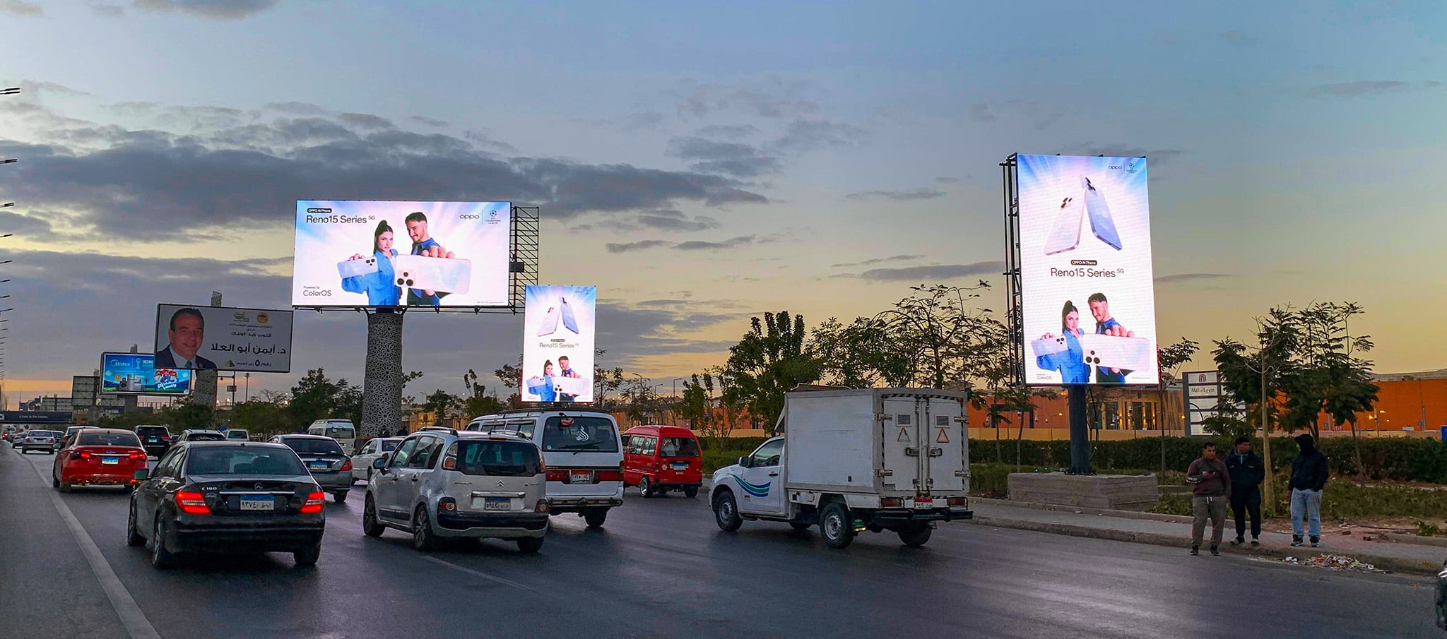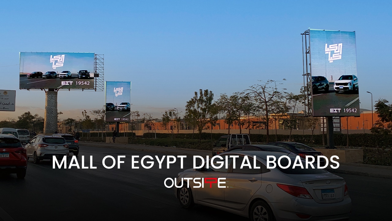 Mall of Egypt digital screens are located right outside Mall of Egypt on Al Wahat Road to place brands at the center of 6th of October’s most active commercial corridors. This stretch of road serves as a major point for traffic heading to and from the mall and surrounding residential areas, as well as passersby using the road to access the 6th of October area.